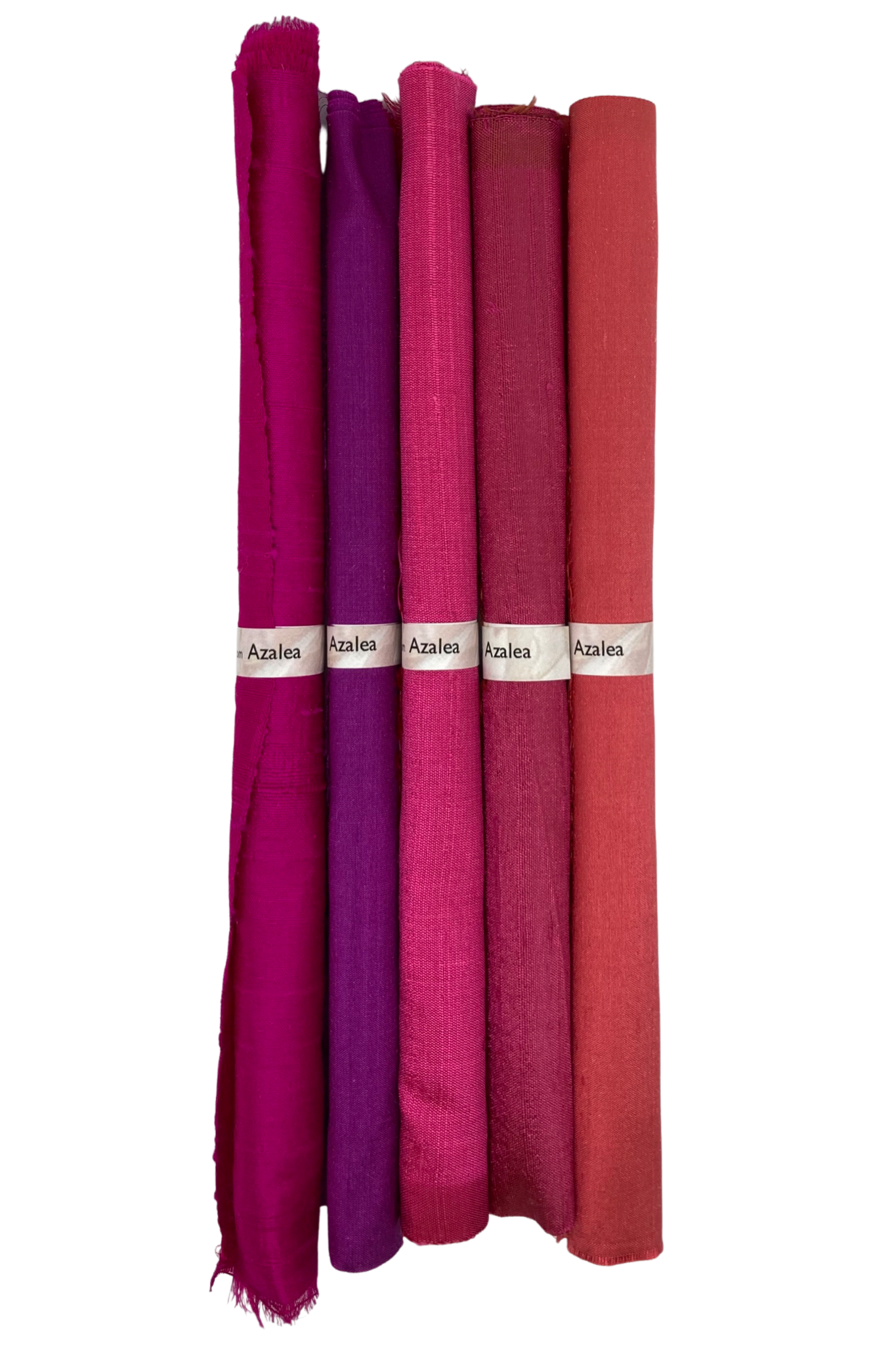 Silk dupioni sets contain five pieces of silk dupioni, or occasionally silk shantung or metallic blends, with each piece measuring approximately 8" x 11"