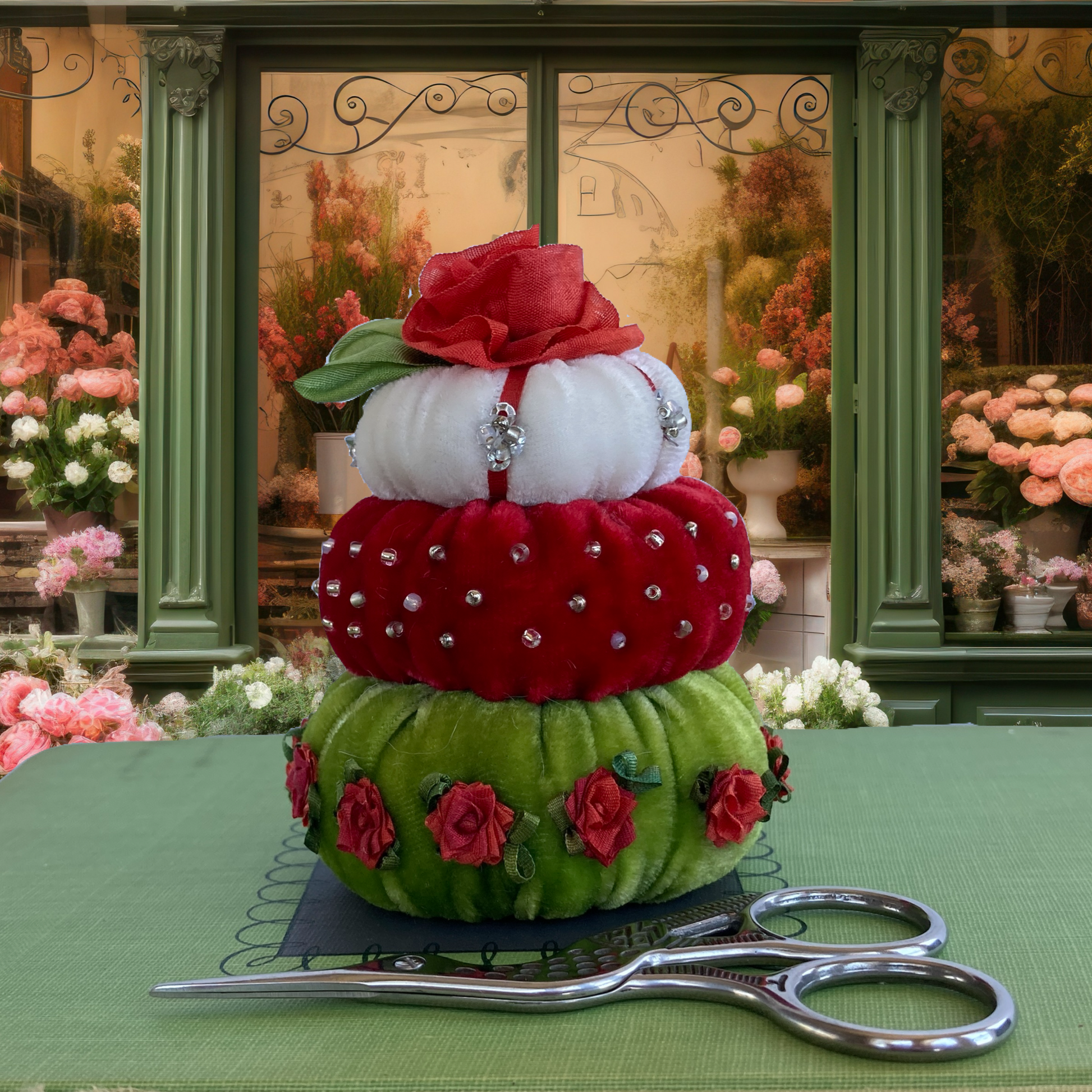 Comprised of White, Candy Apple and Lime velvets, kit also contains ribbon, floss, sequins, beads, complete instructions and patterns.