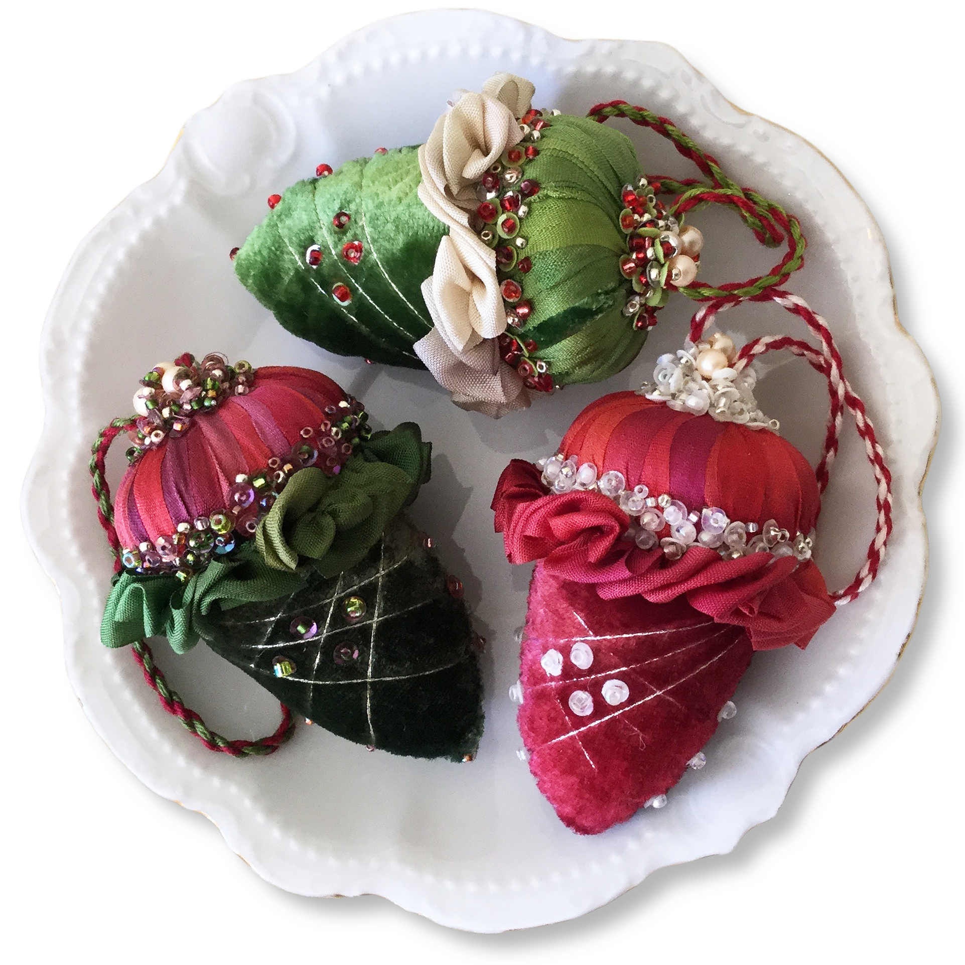Choose from a Set of Three or Individual shades to make beautiful velvet & silk ribbon acorns ornaments.
