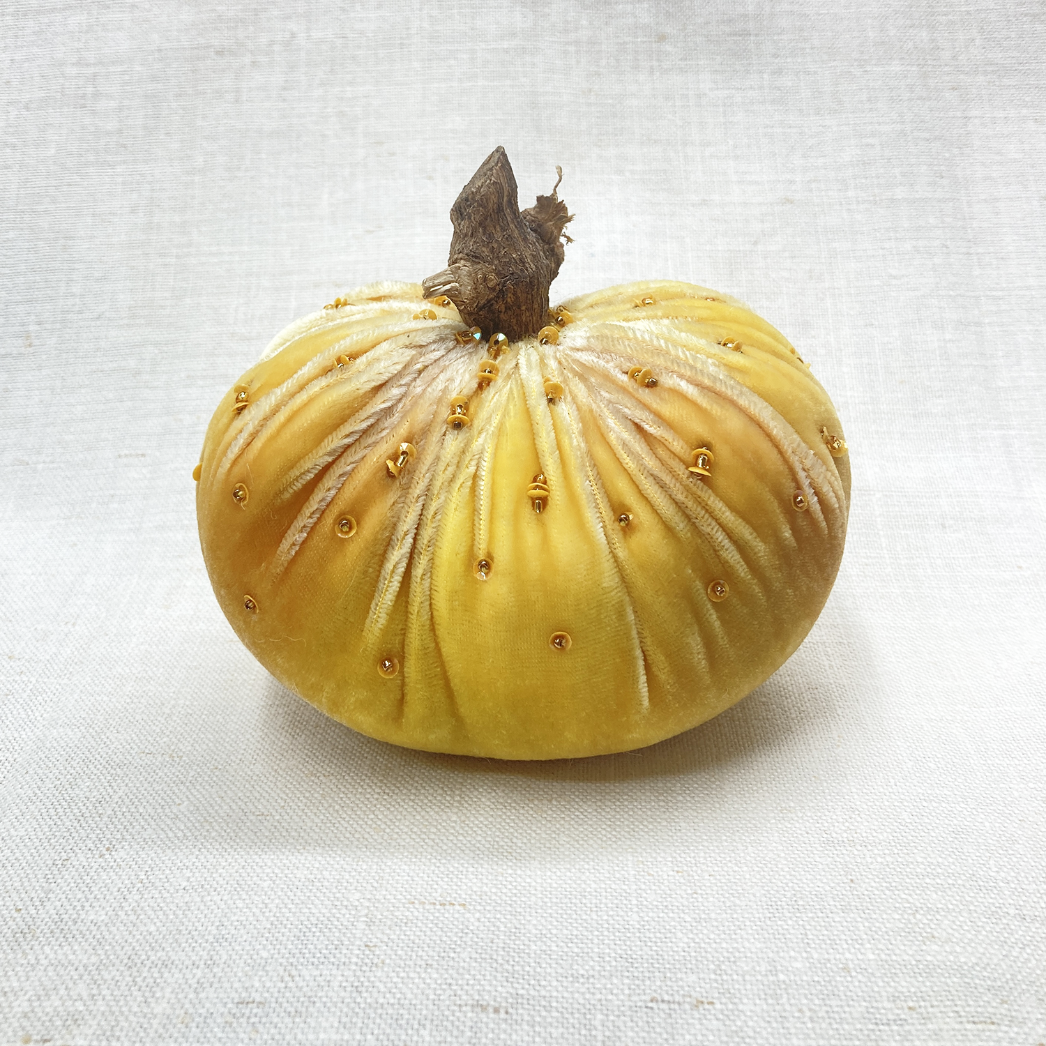 In Golden velvet, our velvet pumpkin kit also contains ribbon, sequins, beads to make one pumpkin, along with complete instructions and patterns.