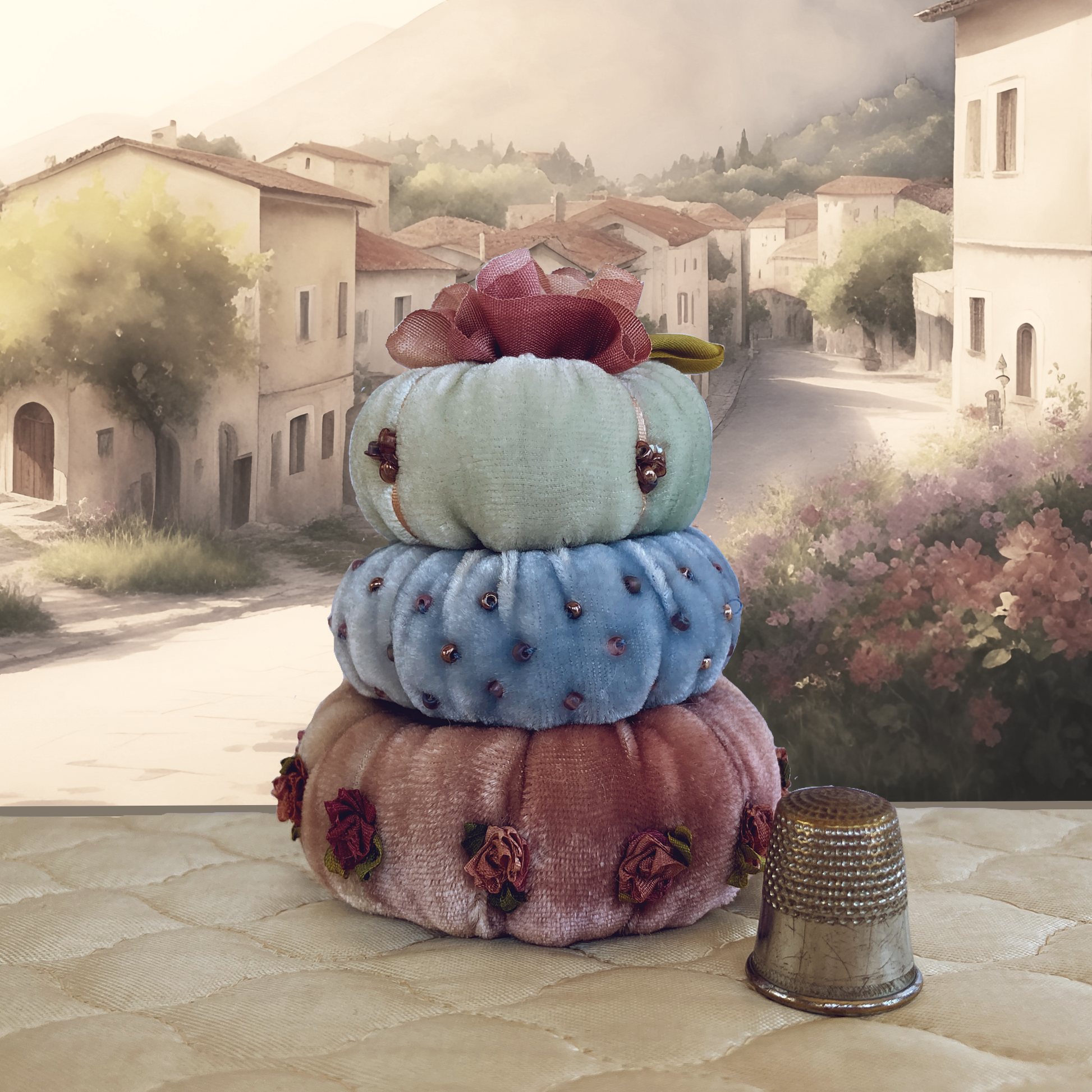 Finished size of each stacked turban is about 3" tall with a 2 1/2" diameter.