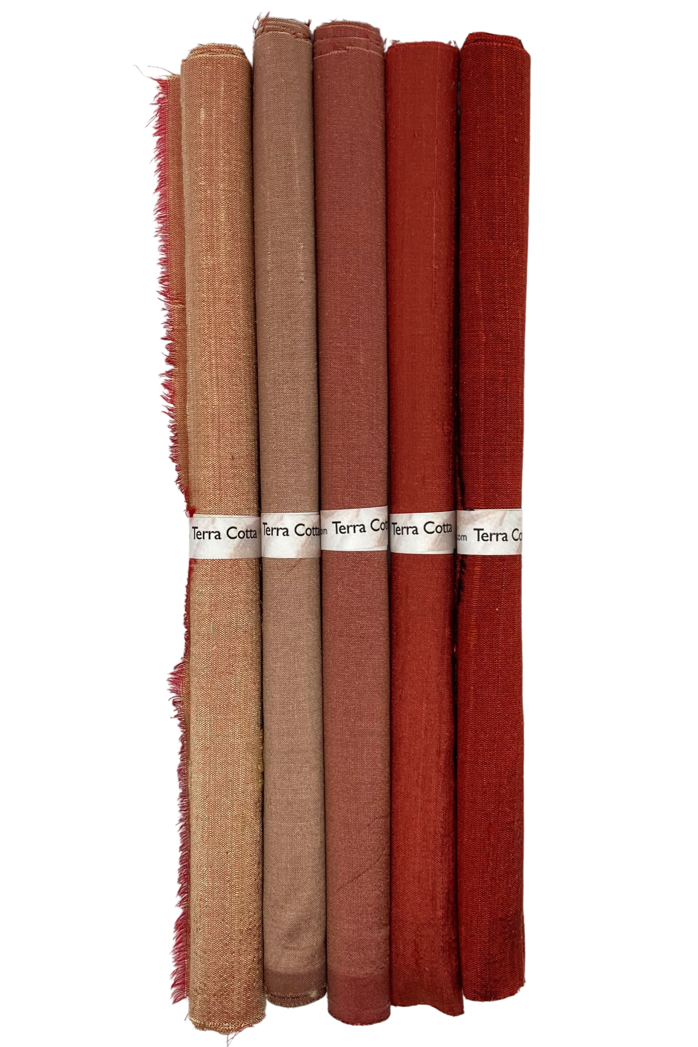 Silk dupioni sets contain five pieces of silk dupioni, or occasionally silk shantung or metallic blends, with each piece measuring approximately 8" x 11"