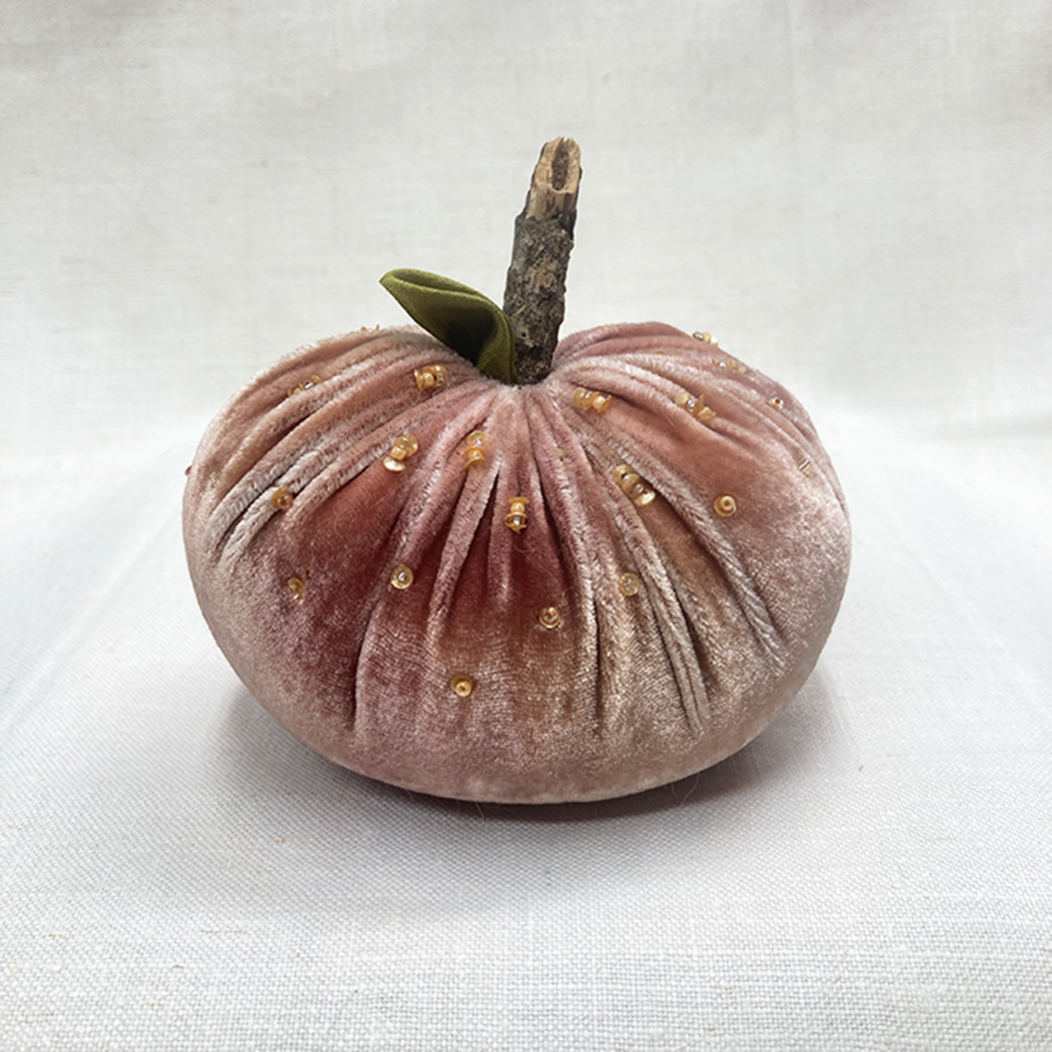 In Terra Cotta velvet, our velvet pumpkin kit also contains ribbon, sequins, beads to make one pumpkin, along with complete instructions and patterns.